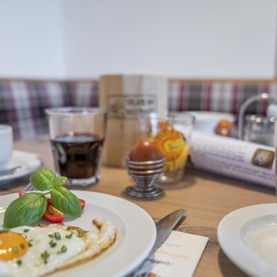 Tutto il formaggio della nostra colazione proviene dalla nostra regione. Le specialità di capra le acquistiamo dal caseificio Figerhof di Kals am Großglockner. Il formaggio biologico di latte vaccino lo acquistiamo dalla fattoria biologica Stemberger di St. Veit im Defereggental. Tutto il latte utilizzato per il formaggio proviene dal Tirolo Orientale, dove è stato prodotto nei meravigliosi prati e pascoli alpini e poi lavorato nella nostra regione.
