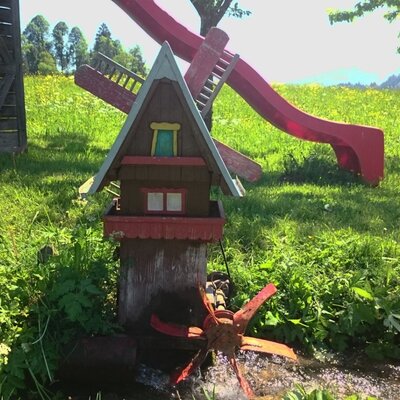 Caratteristiche della struttura:L'ampio prato, circondato da alberi da frutto, con zona relax, un piccolo torrente e un laghetto con trote e anatre, invita a rilassarsi e a giocare.