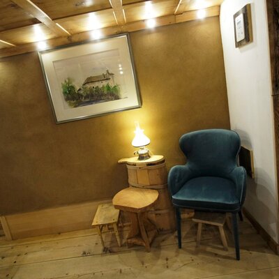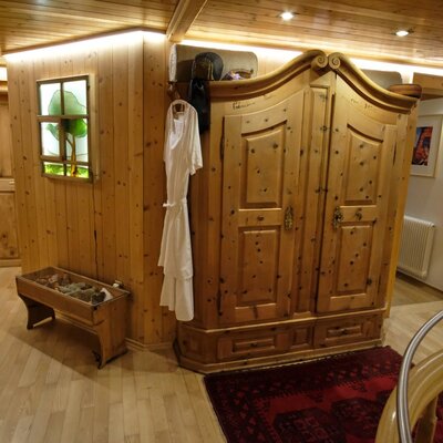 Stile rustico moderno, con romantico letto a baldacchino... Mobili in legno massiccio: abete locale.L'appartamento è caratterizzato da un'atmosfera lussuosa. Camera dei genitori e camera dei bambini separate da una parete divisoria in legno con porta scorrevole in vetro. Nel giardino d'inverno dell'appartamento è situata la cucina, dotata di ogni comfort.