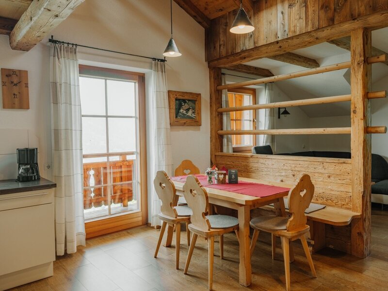 Godetevi il nostro appartamento accogliente di 74 m² in legno recuperato per 2-4 persone. Dotato di una camera da letto con letto matrimoniale e mobili in legno massiccio, un loggiato aperto con tetto a capriate con due letti singoli e una zona relax, una cucina abitabile con frigorifero, forno e piano cottura in vetroceramica, lavastoviglie, macchina per il caffè, angolo per sedersi, divano e TV satellitare, e un bagno con doccia, vasca da bagno e WC.