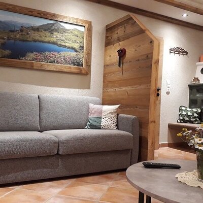 L'alloggio è caratterizzato da ambienti confortevoli e un'atmosfera tranquilla, con tipica stufa in maiolica e una vista idilliaca. L'alloggio dispone di 3 camere, ingresso, doccia/WC, cucina abitabile con generoso angolo cottura completo di forno, stufa in maiolica con comoda panca nonché tavolo con sedie e panca angolare. La camera da letto è spaziosa e dispone di un letto a due piazze e un letto a castello; su richiesta è inoltre disponibile un letto con sponde. Del funzionamento della stufa in maiolica ci occupiamo noi quotidianamente.