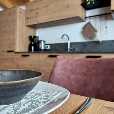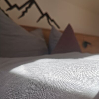Il nostro appartamento, completamente ricostruito nel 2023, si trova direttamente sul maso. Offre un'ampia zona pranzo-soggiorno molto ben attrezzata, due camere da letto, nonché un bagno e una toilette separati su circa 90 m². Una camera da letto ha un letto king-size, l'altra è arredata con due letti singoli, che possono essere facilmente trasformati in un letto matrimoniale. Abbiamo anche una culla in loco. Dal balcone esposto a sud si può godere del sole mattutino e guardare direttamente il centro del paese. Dal balcone esposto a ovest si può vedere l'edificio della stalla. Siete invitati a servirvi nel nostro variegato giardino di erbe aromatiche.